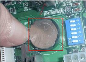 但对于以前的老主板是找不到该跳线的,先取下锂电池,过5~6秒钟的时间,电池完全放电后再安装上,即可解决开机无显示的故障。如图3所示。