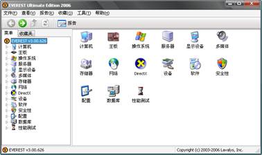 Everest ultimate是一个测试软硬件系统信息的工具,可以详细地显示出PC每一个方面的信息。支持上千种(3400+)主板,支持上百种(360+)显卡,支持对并口/串口/USB这些PNP设备的检测,支持对各式各样的处理器的侦测。运行Everest ultimate出现的主界面如图12所示。