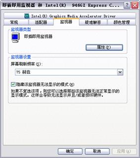 当系统的最高的刷新频率没有超出70HZ,需检查Windows XP是否正确识别出了显示器的具体型号;未识别的,可重新安装显示器的驱动程序。 |